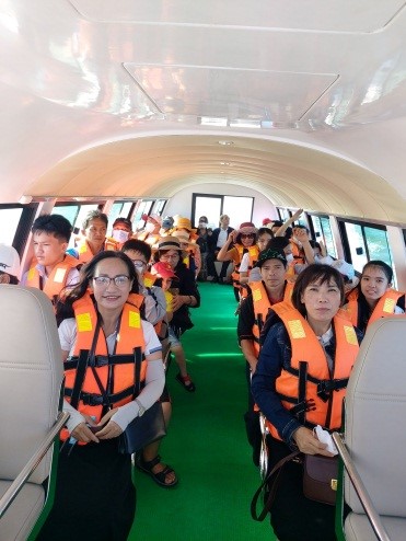 Sáng ngày 24/07, đoàn tham quan tiếp tục hành trình với một trải nghiệm vô cùng thú vị khác đó là ra đảo Hòn Khô (Nhơn Hải) – một hòn đảo nhỏ còn khá hoang sơ để tắm biển, chạy mô tô nước, lượn phao bằng ca nô và đặc biệt là lặn ngắm san hô trong làn nước biển trong xanh.