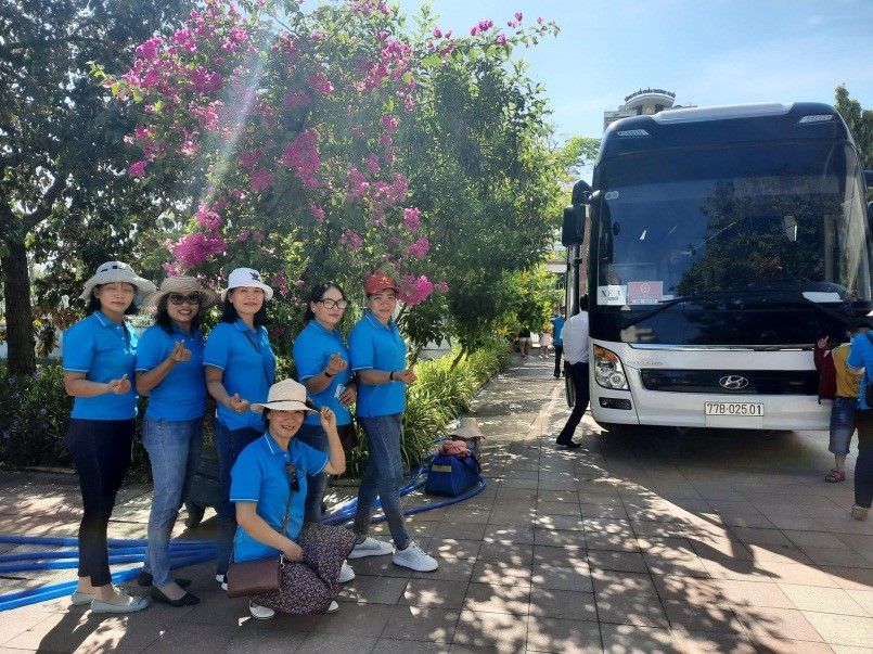 Đúng 9h đoàn xe gồm 3 chiếc chở theo 141 người xuất phát từ trường THPT Nguyễn Trân, chở theo bao nhiêu sự háo hức cho một hành trình với nhiều mong đợi. Hành trình từ Tam Quan đến Quy Nhơn, trên xe lúc nào cũng vang lên tiếng hát, tiếng cười đùa rộn rã, chính điều này đã làm tan đi những mệt mỏi và cảm giác say xe của một số cô giáo.