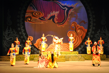 Trình diễn hát Bội trong nhà hát. Ảnh: Hồ sơ di sản, tư liệu Cục Di sản văn hóa