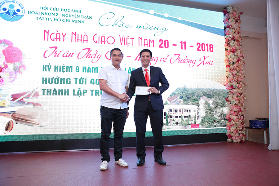 Công ty Nam Long telecom cũng tài trợ 5 triệu đồng để phát quà cho cựu học sinh có thành tích xuất sắc