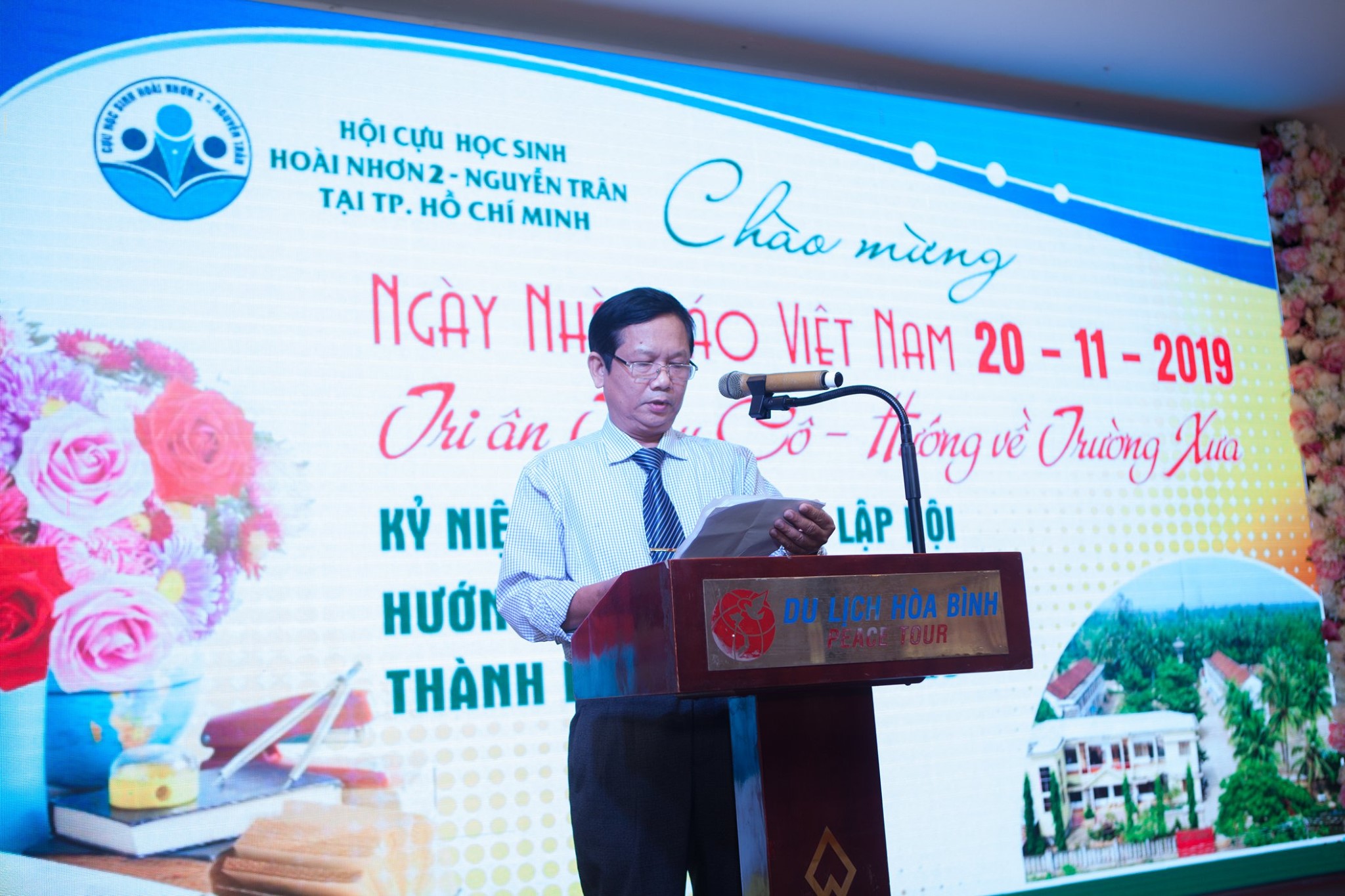 Ông Võ Văn Thư - Chủ tịch hội cựu học sinh Hoài Nhơn 2 - Nguyễn Trân tổng kết hoạt động của Hội năm 2019,