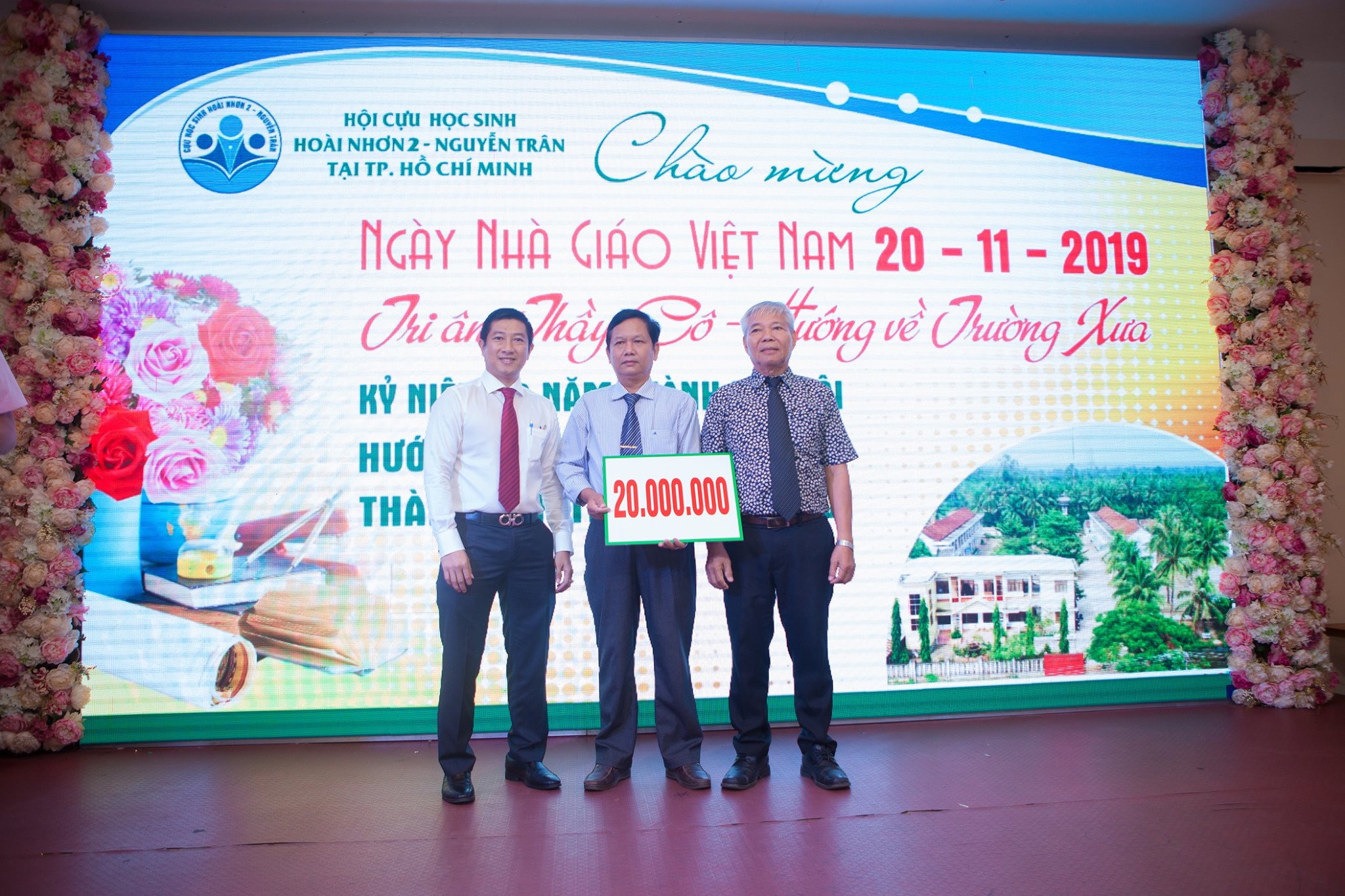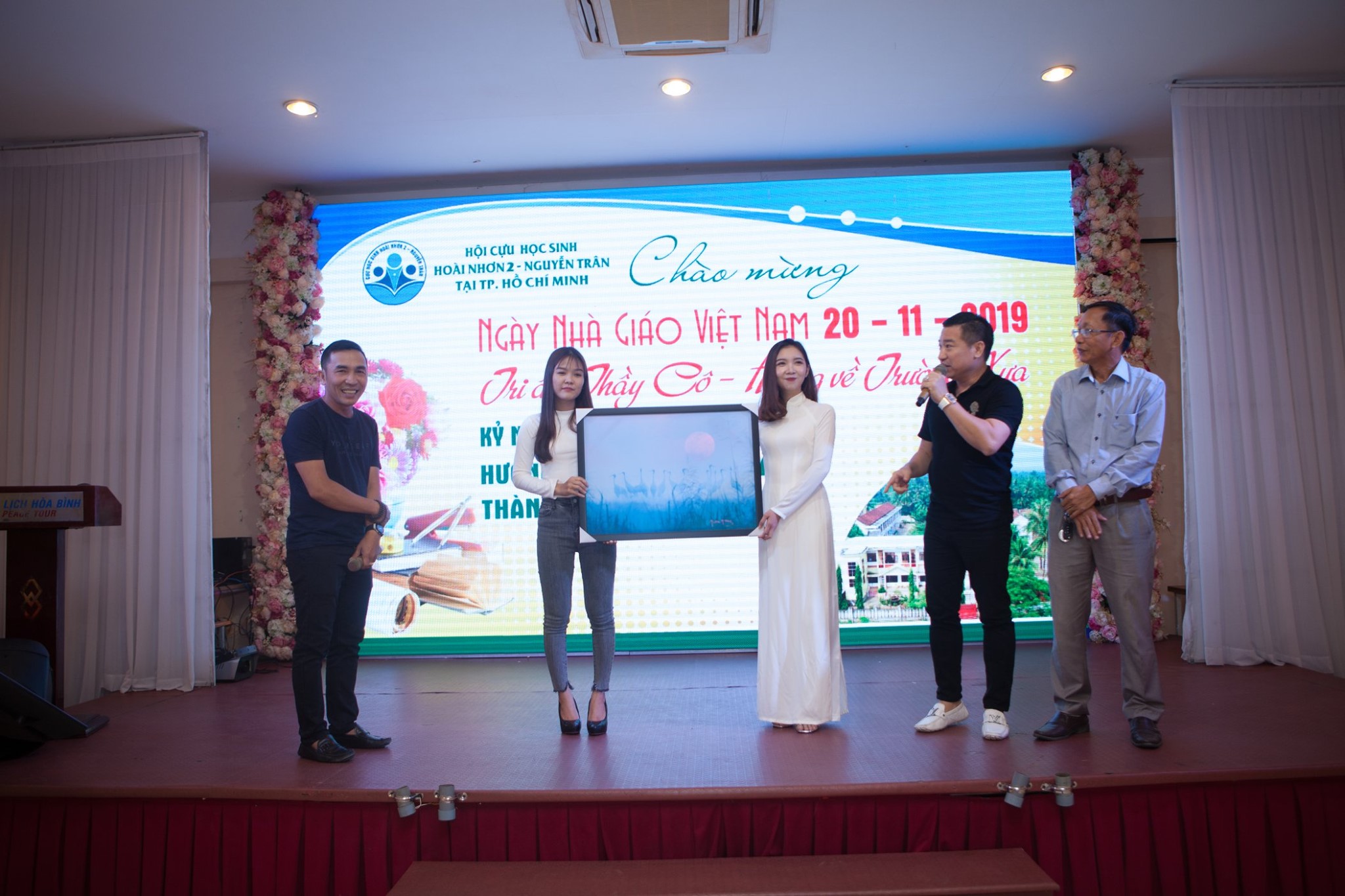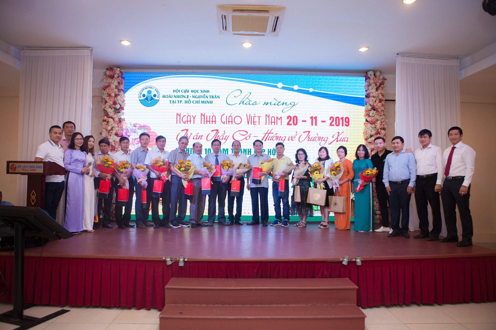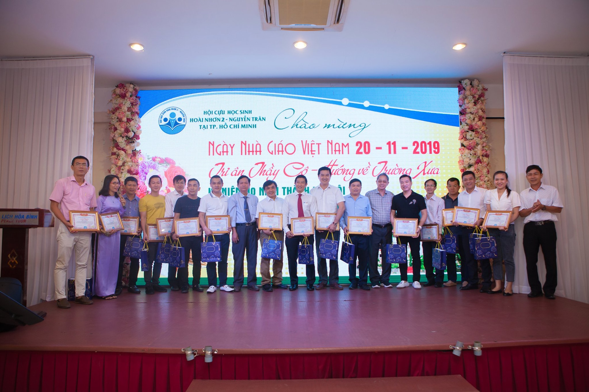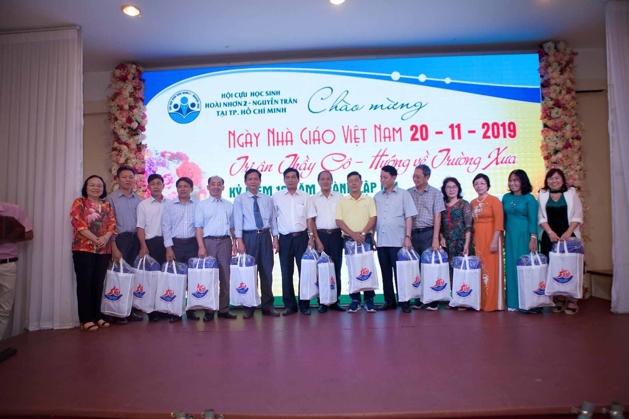 trao hoa & phần quà cho Quý thầy cô là giáo viên, cựu giáo viên trường Hoài Nhơn 2, THPT Nguyễn Trân