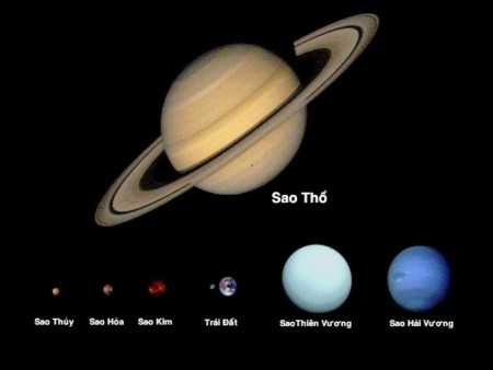 Và Sao thổ thì bé hơn sao Mộc, các bạn có thể thấy Trái Đất giờ đã bé như thế nào