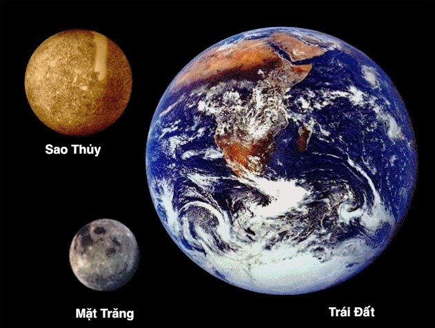 Đây là kích thước của Sao Thủy so với Trái Đất và Mặt Trăng